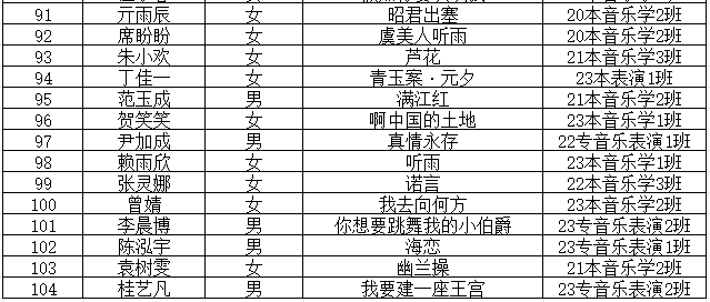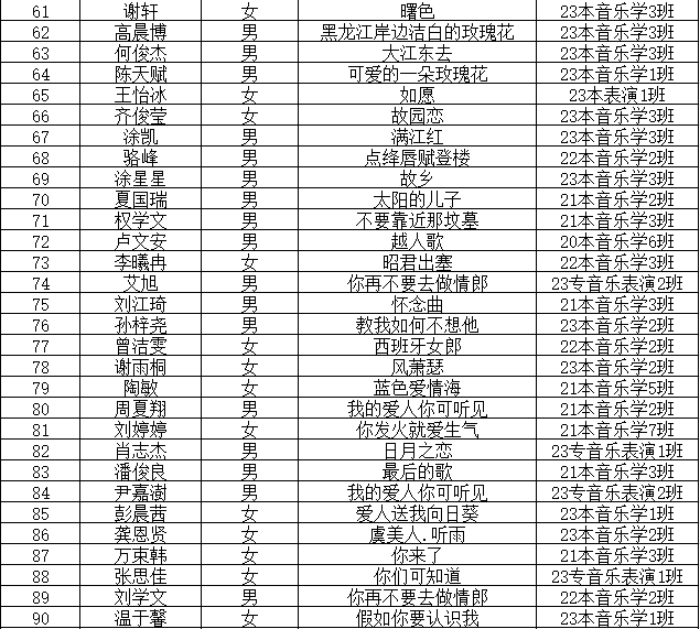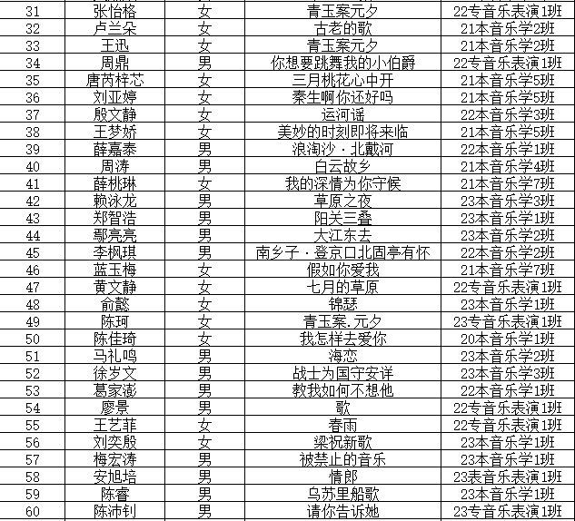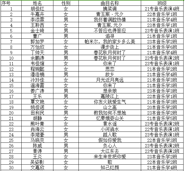 江西应用科技学院第十四届“辰林杯”专业技能运动会声乐大赛参赛选手公示