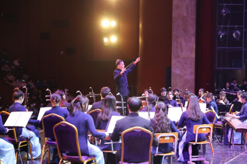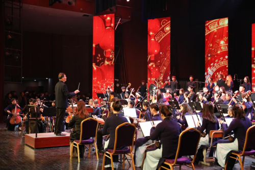 音乐会在旋律明快的《春节序曲》中拉开帷幕。《红楼梦序曲》《挂红灯》《更换的季节》《土耳其进行曲》《打虎上山》《西部主题畅想曲》《跑旱船》《欢乐歌》《赛马》等经典曲目或悠扬动人,或恢弘磅礴,以器乐独奏、双重奏的形式赞颂了祖国锦绣山河,表达了对祖国秀丽河山的热爱,表达了对新一年的期盼。由胡大春老师指挥的《吴歌》曲调明快,表达了对美好生活的向往,将现场气氛推向高潮,赢得现场观众阵阵掌声。演奏者们以饱满的热情表达了在新的一年里对大家的衷心祝福,唱响了师生和国家民族的美好未来。晚会在《北京喜讯到边寨》中落下帷幕,辰林国乐团的激情演绎赢得了观众们的热烈掌声。