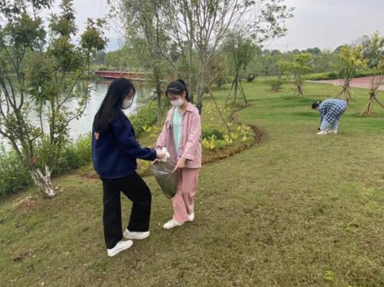 负责教室的志愿者们认真清扫地板,捡掉抽屉的垃圾,并把教室的桌凳摆放好,不放过每一个角落,分工合作,井然有序。负责浴星湖边的志愿者们有的清理湖边的杂草,有的认真捡拾草丛上的果皮纸屑等各类垃圾。天气阴冷,却没有阻挡志愿者们劳动的热情。他们和谐融洽,高效地完成任务。