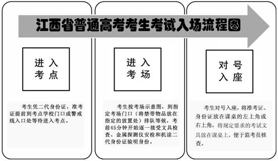 五、每科考前45分钟,考生凭准考证、二代身份证在考场前门入口处排队等候,并依次进入考场在视频监控下自觉接受监考员的安全检查和身份验证后对号入座,并将准考证、二代身份证放在课桌的左(或右)上方,以便查验。