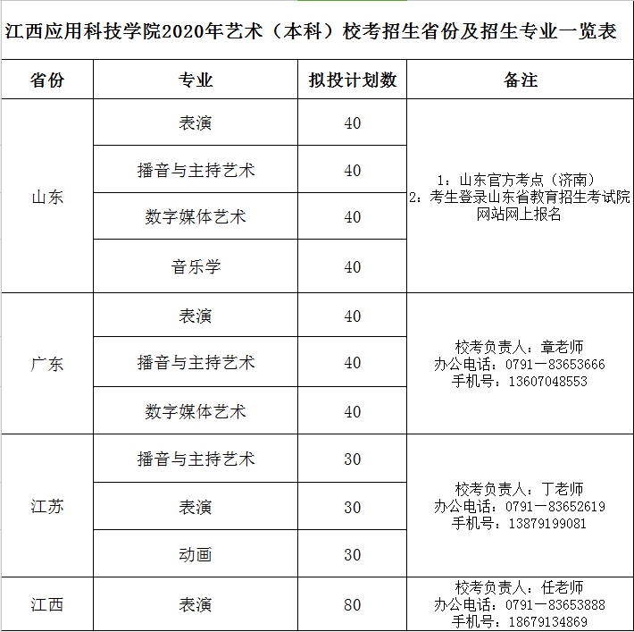 江西应用科技学院2020年艺术(本科)校考招生简章