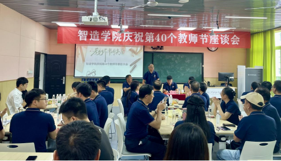 2024年9月10日中午12:30,在这个意义非凡的教师节之际,智造学院在智造工程中心203会议室召开了庆祝第40个教师节座谈会。此次会议旨在表彰先进,激励全院教职工以更加饱满的热情投身于教育事业,共同推动学院的高质量发展。学校谢远健副校长参与了本次会议,全院教职工齐聚一堂,共同庆祝这一神圣而光荣的节日。