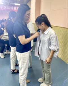 紧接着由“从教三十年教师”为新教师代表佩戴校徽。这一仪式不仅传递了教育事业的接力棒,更是对新教师的一种鞭策和激励,希望他们能够继承和发扬老教师的优良传统,为学院的发展贡献自己的力量。