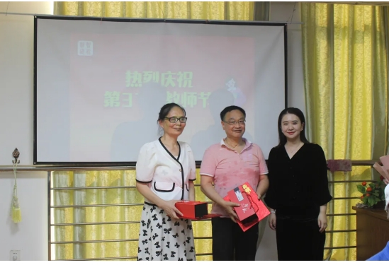 3、江西应用科技学院常务副校长干甜为从教十年的教师颁发荣誉证书及礼品