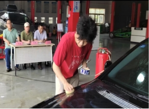 本次竞赛主要考查的是汽车美容技术实操过程,比赛项目涵盖了汽车美容的多个重要环节,包括汽车外部清洗、内部清理、打蜡和抛光等。这些项目既考验选手们对汽车外观的精细护理能力,又检验他们对车内环境的整洁维护水平,全面而细致地展现了汽车美容的全过程。