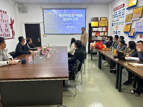 南昌欧赛牡光电有限公司莫钊技术总监(教授)以“电子产品生产制造及SMT工艺”为主题,深入浅出地介绍了现代电子制造流程、表面贴装技术(SMT)的关键工艺与设备,以及行业最新发展趋势,增强了教师们对产业实践的认识,对促进理论教学与工程实践相结合具有重要启发。